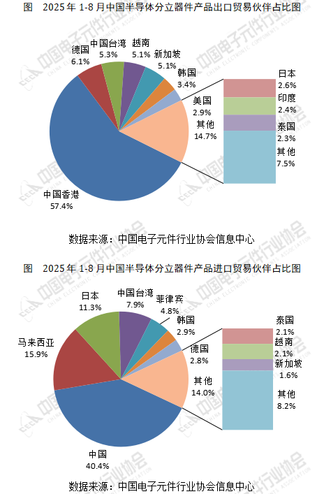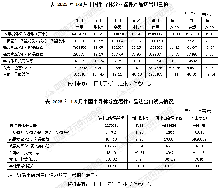 2025年1-8月半導體分立器件大類(lèi)產(chǎn)品進(jìn)出口詳情